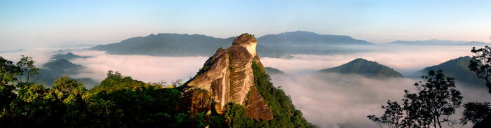 當年文天祥手下的將領清流人雷三益帶領官兵抗擊元軍,被蒙古人追殺到此山中。眼看追兵緊逼,后無退路前無去路。正在危急之際,突然,從林中跳出一頭巖羊從懸崖上疾行而去。雷三益等將士緊隨其后,沿此小道前進,甩開了敵人的追趕。大家看,這石壁上的一個個羊蹄印,就是當年那條領路的山羊的后代們留下的。傳說這些山羊已經成仙了,很少人能看到它除了特別有福氣的人。 前面這塊酷似天穹的懸崖搖搖欲墜,讓人擔憂它是否會掉下來,此景就叫“游人憂天”。不過大家盡可放心過去,它立在這里少說也幾百年的歷史了。據說文天祥退守廣東后,清流人以火星女將軍為首的義軍依然堅持抗元斗爭,轉戰閩西大地。有一天,她帶兵來到此地,見路太險,于是就舉劍劈崖,拓開此道。 【象鼻巖】 北斗山的象鼻巖,據說是文天祥轉戰粵西時,一位壯族酋長送他的坐騎。 【朱筆巖】 朱筆巖形似文天祥用朱筆點青蛙。 北斗山風景神奇、險峻、美妙,遍布在景區中的傳說,美麗動人。 |