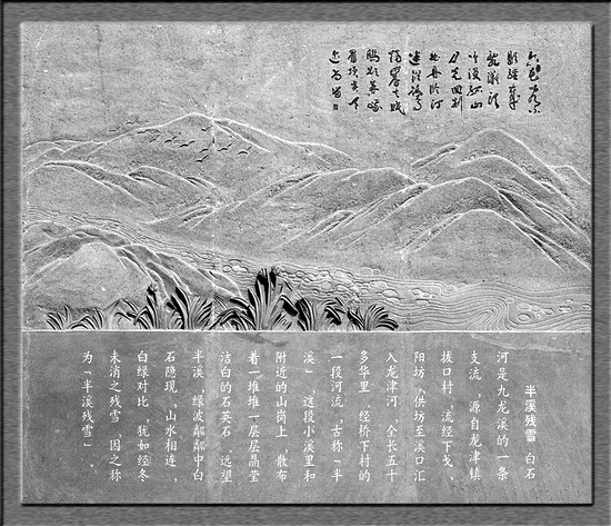 半溪殘雪 白石溪是龍津河的一條支流,源出拔口隊,流經下戈、陽坊、供坊,橋下等村莊,全長五十多華里,古稱“半溪”。因小溪流經的地方出產石英石,俯視河底,綠波粼粼中白石蕩漾,仿佛經冬殘雪未消。附近山崗,煩暑全消。舉止眺望,供坊、上寶洞在山巒重疊、云蒸霞蔚之中。田疇廬舒,或隱或現(xiàn);白石河水,蜿蜒淚沒,從夾岸垂楊竹樹當中款而來。在青山綠水中,白石晶瑩,皎潔可愛。
