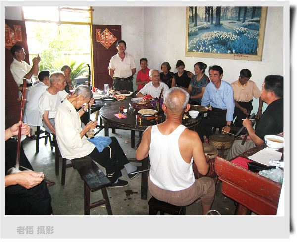 同樂會是業余團體,大家憑著興趣走到一起,在活動中尋求快樂,在為社會默默奉獻中獲得快樂。談起參加同樂會心得, 89歲的王傳三感觸間頗有幾分自豪。 王傳三老人回憶,抗日期間,同樂會編演曲目,倡導抗日救國,當時有近10 名會員帶頭參加了紅軍和游擊隊。會員還響應購買飛機抗日號召,每人至少捐出5塊大洋。鄰近的明溪縣籌建學校,同樂會的 40余名會員前往義演半個月,門票所得悉數捐助。解放后,縣廣播電臺自辦節目不多,許多同樂會員受邀成為嘉賓,每個星期他們都要對著話筒,現場演唱京劇,通過廣播為當年文化生活相對匱乏的群眾,帶來一次又一次的快樂享受。近年來,黨的惠民政策溫暖全民,同樂會更是不甘落后,爭當志愿先鋒,以“京腔”廣泛宣傳征兵工作、計劃生育、平安建設、護林防火、醫療衛生等。 在同樂會內部,長期以來,也始終洋溢著奉獻互助之風。巫桃增是名駕駛員,未入會前,父親巫萬程及同樂會其他成員前往鄉下或外地演出,巫桃增都是“私車公用”,免費服務。父親去世后,巫桃增“補了員”,當起了樂師,同樂會需要用車,更是隨叫隨到。會員中倘遇逢有人操辦紅白喜事,眾人熱情伸手,幫助解決。湯順平, 2005年危房改造,缺少資金,大家慷慨解囊你500、他 1000助其渡過難關。1980年,巫桃增房屋受災,全體會員不約而至,幫忙清理塌方。 有了這樣的氛圍,大家聚在一起更加快樂。楊維仁會長說,隨著電視、網絡、VCD 的普及,城鎮居民業余文化生活日漸豐富,可京劇同樂會會員卻始終當好京劇“粉絲”,樂此不疲。官火根,59 歲,父親官陶章在1961年困難時期,牽頭創辦了南歧京劇同樂會,受其影響,官火根很早就加入了同樂會,現在城區銷售谷種,遇有活動,他都會放下手中生意,前來參加,問為何有如此動力,官火根笑容滿面:快樂是金錢買不到的! 91歲的鄒學富老人是紅軍失散人員,在會員中年齡最大,每次同樂會活動,他都要步行十幾華里前來。對此,老人有自己的說法:步行參加活動強健體質、愉悅心身,可謂一舉二得。 寧化92歲的退休教師肖戴農,是名“編外會員”,經常到清流參加活動。去年農歷正月初二晚走路不慎摔倒,腦皮出血,第二天老肖瞞著家人,如期赴約在清流舉行的清流、寧化、明溪三個縣票友聯歡會。龍津同樂會活動室至今還貼著他寫的一幅對聯:拉胡琴益壽延年、唱京劇怡情養生。