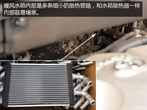暖風水箱堵塞 暖風水箱的結構其實就是縮小版的發動機水箱散熱器,內部是多條細小的散熱管路,和水箱散熱器一樣內部容易堵塞。暖風水箱內部堵塞后流過的冷卻液速度變慢,流量變小,熱量不足,空調暖風自然不熱。