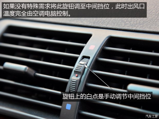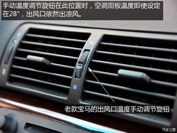 一些特殊問題 當然還有一些讓人哭笑不得的小問題,比如一些老款寶馬E53、E39、E46、E90等車型在中央出風口上設置手動調節出風口溫度旋鈕。沒錯,是在配備自動空調的前提下又配備手動調溫旋鈕,這樣設計的目的是能讓駕駛員在開車時不用低頭看空調面板,右手迅速調節出風口溫度。(雖然我到現在也沒想明白為什么要有這樣的設計……)