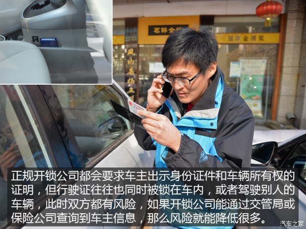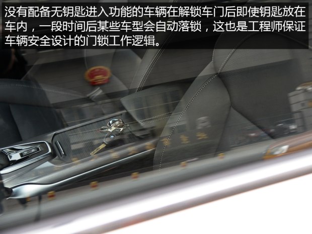 意外不可控的情況 某些配備無鑰匙進入功能的車型即使鑰匙放在車內,車門也會自動落鎖,我就遇到過這樣的情況。當時是把鑰匙放在副駕駛車門下部儲物格,關閉車門一段時間后全車自動落鎖。后來查看說明書,說明書里明確指出車內有幾個地方是探測不到鑰匙的盲區,副駕駛儲物格就是其中之一,將鑰匙放在這幾個位置很有可能造成全車自動落鎖,鑰匙被鎖車內。