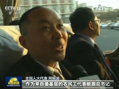 全國人大代表 金鋒:緊張。后來總書記問到我的專業方面,我就開始一點點放松。創新的東西必須要為我們一線所應用,這個才是創新的目的。我們要抓緊學習,跟上這個時代 從會場回駐地的大巴車上,周振波代表用一連串的“沒想到”表達自己的心情。