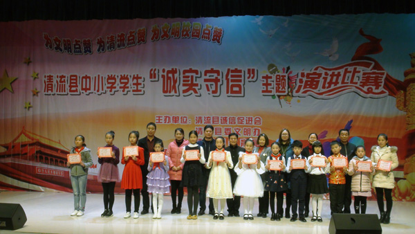 ????1月5日,由清流縣誠信促進會、教育局和文明辦聯合主辦,清流實驗小學承辦的全縣中小學生“誠實守信”演講比賽在實驗小學多功能廳舉行。縣政協副主席、縣誠信促進會會長雷根旺出席比賽活動。 ????本次比賽分高中組、初中組和小學組,在各校初賽的基礎上,共評選出34位選手參加決賽。選手們通過抽簽順序依次上臺演講,他們緊緊圍繞“誠信守信”的主題,旁征博引,娓娓道來。或講述古今中外誠信故事,詮釋誠實守信名言警句;或以自身的經歷及身邊的事例,深刻闡述“誠實守信”對個人、對社會的重要意義;或通過列舉反面事例,抨擊社會上的一些不講誠信,損害他人利益的不良行為,演講感人至深,飽含激情。他們豐富的面部表情、優美的肢體動作、真切樸實的語言不斷博得觀眾們的熱烈掌聲。 ????經評委們認真評選,共評選出小學組一等獎2名、二等獎4名、三等獎6名;初中組一等獎1名、二等獎2名、三等獎2名;高中組一等獎1名、二等獎3名。舉辦這次比賽是為了深入學習貫徹黨的十九大精神,深化文明校園創建,進一步加強學生文明守紀、誠實守信的教育,讓學生明白“人無誠信不立,業無誠信不興,國無誠信不強”的道理,傳承和發揚中華民族誠信美德,營造誠信的濃厚氛圍,培養青少年學生大力踐行社會主義核心價值觀,誠信立身、友善待人的良好道德風尚,讓“誠信之花”在青少年學生心中綻放,做新時代誠實守信的美德好少年。 |
