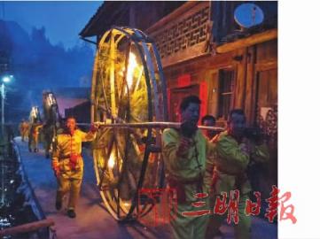 2月28日,夜幕降臨,清流縣溫家山小學操場上,鑼鼓聲響起,客家民俗活動——“地滾龍燈”開始上演,令近千名群眾大飽眼福。 溫家山“地滾龍燈”相傳從北宋末年開始,至今已有900多年的歷史。2010年5月10日,曾作為福建地方文化遺產,參加上海世博會花車大巡游活動。 據了解,滾燈由本地村民制作,以竹子為主要材料,滾燈大小,按個自喜好做成直徑1——5.5米不等的各式圓形竹架。“車身是兩邊帶有竹節的竹筒,中間挖出的孔用于置放火把,左右兩邊的竹節處挖出小孔用于置放螺杵,車身是固定整個滾燈的中樞,必須牢固。”有著幾十年滾燈制作經驗的溫求旺介紹。 “滾燈的制作和游行在以前是很有講究的,領頭的滾燈高度,一般與道路兩邊房屋瓦片的高度相當,如果哪家的房屋亂搭亂建,屋檐超過瓦片到路面的部分,滾燈一經過,就會把多出的部分滾掉。”村里的老人說,滾燈活動都在夜間進行,把點燃的火把插進竹筒,鑼鼓樂隊在前方帶路,后面滾燈從村莊山頂接龍而來,蜿蜒逶迤如一條長龍,從村頭到村尾來回循滾。 所到之處,鞭炮震響,觀者如堵,村民紛紛在各自門前焚香祭拜相迎,祈求來年風調雨順平安吉祥。(本報清流記者站 楊 穎文/圖)