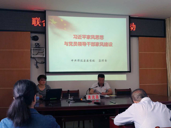????5月11日上午,清流縣審計局、財政局、發(fā)改局、財通公司等四個黨支部在財政局五樓會議室聯(lián)合共建上黨課,共計55名黨員參會。本次授課主題為“習近平家風思想與黨員領導干部家風建設”,由縣委黨校馬清香授課。