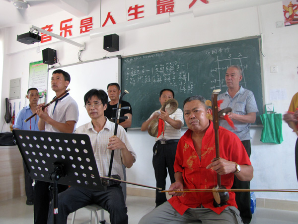 ????近日,清流縣文體廣電出版局、縣城關中學、縣文化館和長校鎮農民文化合作社,聯合開展長校“十番鑼鼓”進校園活動,將這一省級非物質文化遺產傳承給青少年音樂愛好者。 ????活動現場,學生在合作社樂師的示范演奏下,手眼并用,有模有樣地集體跟奏《瓜子仁》、《十杯酒》、《懷胎》等“十番鑼鼓”曲目,一招一式顯得非常投入,其后,在一對一、手把手的傳授中,學生們學得更加得心應手,青少年學員從培訓中感受到中華優秀傳統文化的獨特魅力。 ????長校“十番鑼鼓”歷史悠久,源于明永樂年間,2009年被列為福建省第三批非物質文化遺產。“十”指其樂器多,“番”指其花樣翻新。演奏人員分為兩組,一組負責打擊樂,一組承攬絲弦樂,隊形是絲弦樂在前,打擊樂在后,樂隊由笛聲引路,選擇何種曲目,由笛子手決定,笛子送出一個音符,眾樂手立即同步跟上,笛子手即要有較好的技藝,又要有很強的節奏感和協調能力,以和諧整個樂隊的演奏。十番鑼鼓采用的曲調約有40多種民間小調。目前,長校“十番鑼鼓”主要分布在長校村、江坊村,以村為單位自成一隊,每隊演奏隊員40多人,多為村里的中老年音樂愛好者,主要在傳統節慶日、送兵入伍、慶功會、慰問軍烈屬、退休老人等重要活動演奏。 |