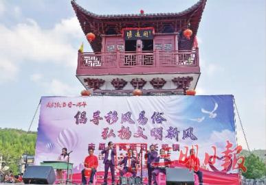 日前,由清流縣紀委、縣委文明辦主辦的“倡導移風易俗弘揚文明新風”主題宣傳活動,在長校鎮精神文化廣場舉行。活動以文藝匯演、擺放展板、發放倡議書、面對面宣傳等形式,向群眾傳遞科學、健康、文明的生活方式和理念,并給大家帶去了端午節的問候,精彩節目吸引了300余名群眾觀看。圖為林畬鄉向陽村自編自導的節目《向陽小曲》。(三明日報清流記者站 巫建輝 攝)