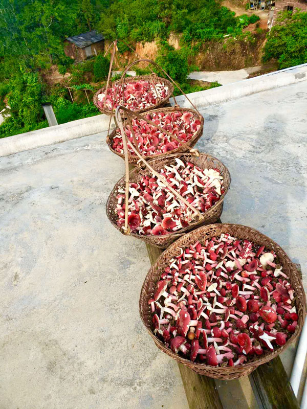 從當(dāng)?shù)剞r(nóng)戶了解到,紅菇的生長(zhǎng)是有時(shí)間性的,必須在某一時(shí)間采摘。它的生長(zhǎng)期一般一年兩季,一季在端午節(jié)前后,一季在中元節(jié)前后。通常第二季的生長(zhǎng)期比第一季更長(zhǎng)些,可達(dá)半個(gè)月之久,產(chǎn)量也相對(duì)較高。紅菇生長(zhǎng)在高溫濕熱的季節(jié),悶熱的盛夏,高溫陣雨后,土壤中多年的菌絲受到冷熱溫差的刺激而快速發(fā)育,在蒸蒸濕熱中滋生出品種繁多、形色迥異、色彩豐富的野生菇類(lèi)。因采摘紅菇十分艱難,當(dāng)?shù)卮迕衩康郊t菇產(chǎn)出季節(jié),天沒(méi)亮就提著手電筒進(jìn)山采菇。