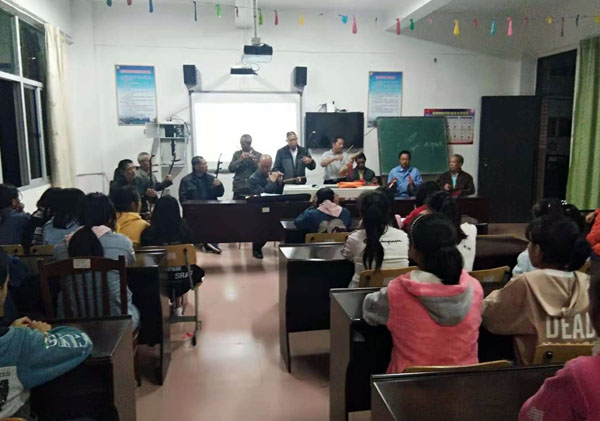 11月8日晚,清流縣長校鎮省級非物質文化遺產“十番鑼鼓”演奏團一行10人到長校中學,為七、八年級學生又上了一堂別開生面的鄉音大餐。據悉,為更好地繼承和弘揚長校鎮的優秀傳統文化,自2017年起,清流縣長校中學和清流縣長校鎮民間藝術隊聯手打造“十番鑼鼓進校園”和“十番鑼鼓進班級”活動,學校定期邀請“十番鑼鼓”演奏團成員到學校演奏,為同學們傳授“十番鑼鼓”知識,手把手教同學們各種器樂演奏。 清流縣長校中學“十番鑼鼓進校園”活動,讓同學們了解了許多有關民間音樂知識,豐富了同學們的課余文化生活,激發了他們對民間文化藝術的興趣和愛好。學校將此項活動作為長校中學校園文化特色教育之一,以此繼承和弘揚當地的傳統文化。 |