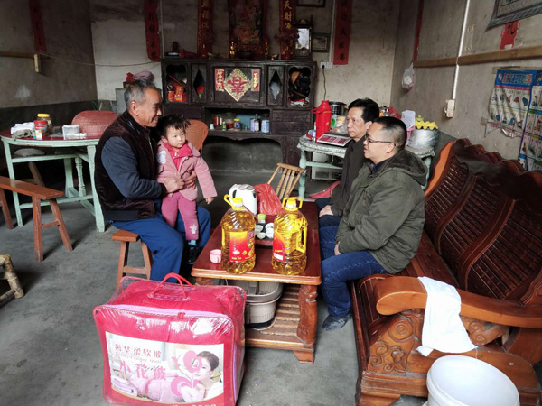 黨支部書記鄭斌還專門慰問荷坑村掛包貧困戶,為其送上慰問金、油、面等生活必需品,叮囑有困難和問題隨時聯系,將盡全力給予幫助,鼓勵他要對生活充滿信心,依靠黨的好政策,勤勞致富、早日脫貧。