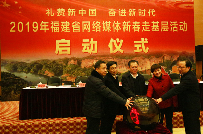 2月13日上午,以“禮贊新中國 奮進新時代”為主題的2019年福建省網絡媒體“新春走基層”活動,在三明市泰寧縣正式啟動。 省委宣傳部副部長、網信辦主任許守堯,省委網信辦副主任葉得盛,三明市委常委、宣傳部長林斌等出席了啟動儀式。