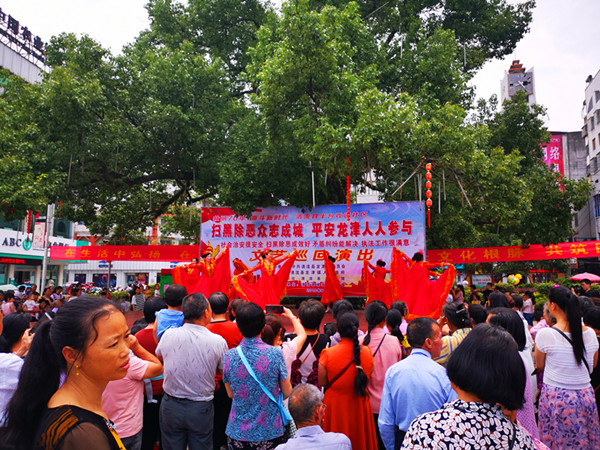 6月16日,龍津鎮人民政府聯合城關老人協會以“掃黑除惡眾志成城,平安龍津人人參與”為主題的掃黑除惡專項斗爭文藝巡回演出”在龍津廣場拉開序幕! 一曲歡快的舞蹈《歡聚一堂》拉開了活動序幕,隨后,演出緊扣主題,舞蹈《美麗心情》、《共圓中國夢》等精彩節目逐一上演。演出現場氣氛熱烈,精彩紛呈,高潮迭起。普及了掃黑除惡專項斗爭的知識和重要性。整場文藝演出賞心悅目,不僅弘揚了社會正能量,還激發了人民群眾廣泛參與掃黑除惡專項斗爭的熱情。