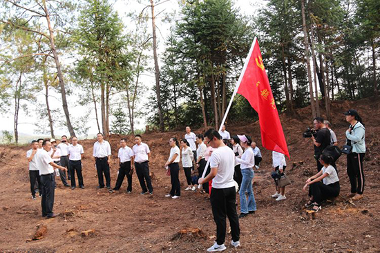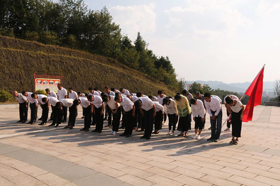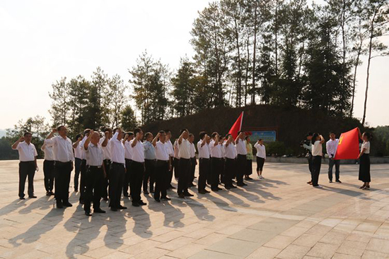 在鮮紅的黨旗下、靜謚的氣氛中,組織開展重抄入黨申請。 紀念碑前重宣入黨誓詞