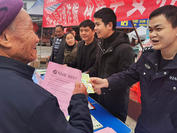 活動現(xiàn)場,工作人員懸掛起防詐騙橫幅,向過往群眾發(fā)放防電信詐騙、掃黑除惡等相關(guān)宣傳材料,并設(shè)立咨詢臺,接受群眾咨詢。工作人員現(xiàn)場向群眾講解違法犯罪分子經(jīng)常使用的詐騙手段和防騙方法,告誡群眾堅決做到對詐騙信息不理睬、不聯(lián)系、不上當(dāng),收到相關(guān)詐騙信息時及時撥打轄區(qū)派出所電話進(jìn)行舉報。