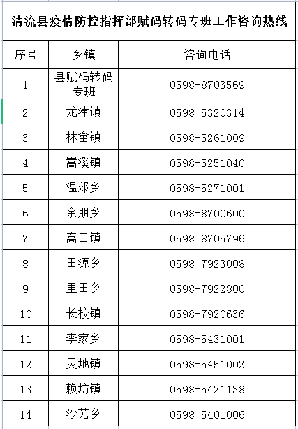 @清流人,疫情防控賦碼轉碼工作咨詢熱線來了