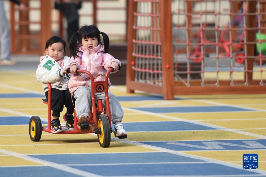 小朋友在雄安容和雙文幼兒園玩耍(3月23日攝)。新華社記者 駱學(xué)峰 攝 |