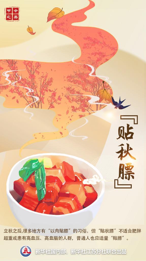 “人們一般還會選擇在立秋日吃肉,意在‘以肉補膘’。”羊杏平解釋說,但從營養(yǎng)學的角度講,“貼秋膘”不一定非得吃肉,尤其不適合肥胖超重或患有高血壓、高血脂的人,建議多吃綠葉菜、薯類、饅頭、酸奶等發(fā)酵類的食物,少吃肉類。普通人群“貼秋膘”也要適量,不宜暴飲暴食。 |