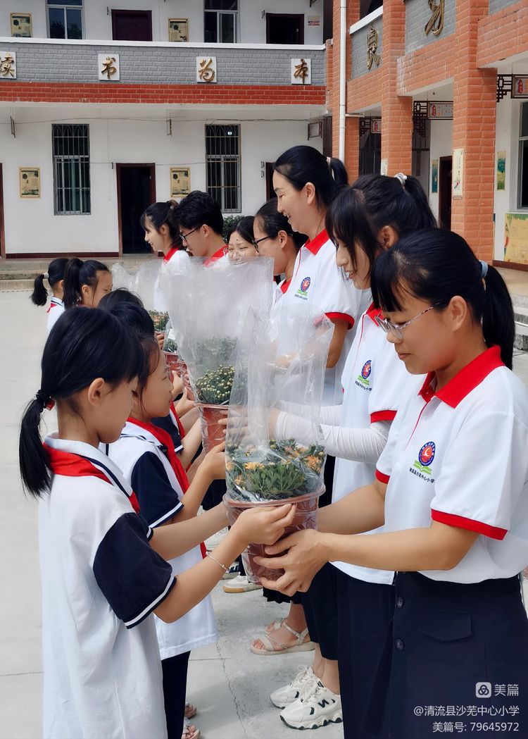 全體學生齊聚操場,一起唱《每當我走過老師的窗前》,用歌聲為老師送上節日的祝福,最后大聲喊出:“老師節日快樂。老師,您辛苦了。”學生為老師送上盆栽,祝福老師節日快樂,生活幸福美滿。