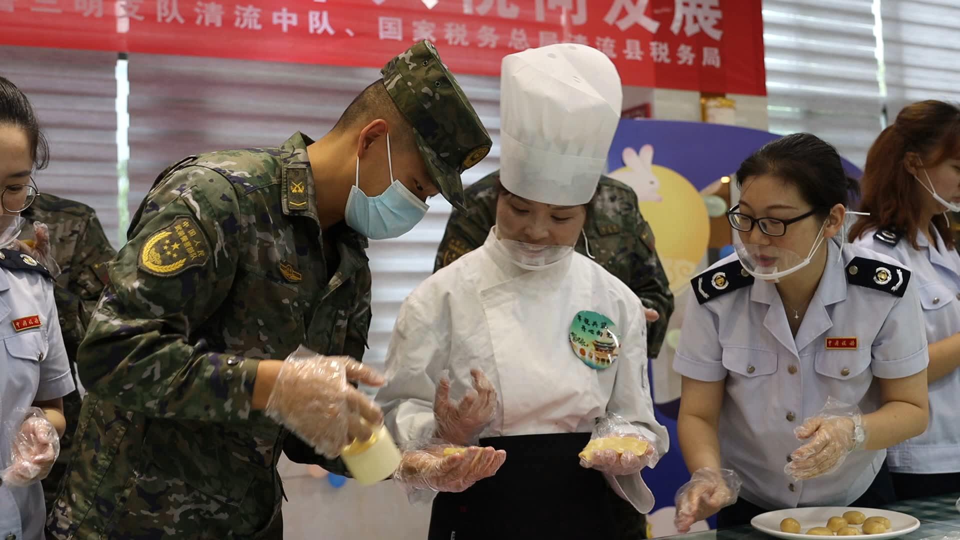 活動(dòng)現(xiàn)場(chǎng),武警戰(zhàn)士們和稅務(wù)干部一起和面、搟皮、包餡,再用月餅?zāi)>咻p輕一壓,一個(gè)個(gè)印有“中秋”字樣的月餅就“誕生”了.同時(shí),大家也紛紛聊起家常,整個(gè)現(xiàn)場(chǎng)充滿著節(jié)日?qǐng)F(tuán)圓的氣息,隨著活動(dòng)的深入,大家不禁拿出手機(jī),向遠(yuǎn)在家鄉(xiāng)的親人撥通視頻電話。 國(guó)家稅務(wù)總局清流縣稅務(wù)局黃宇鵬:每逢佳節(jié)倍思親,在中秋佳節(jié)這個(gè)團(tuán)圓的日子里,武警官兵們依舊奉獻(xiàn)自我,堅(jiān)守崗位。正是因?yàn)橛兄渚俦鴤兊姆瞰I(xiàn)與堅(jiān)守,才有了萬(wàn)家團(tuán)圓,才有了我們現(xiàn)在安寧幸福的生活,今后我們也一定會(huì)弘揚(yáng)雙擁傳統(tǒng),學(xué)習(xí)武警官兵們的過(guò)硬作風(fēng)和堅(jiān)守崗位的家國(guó)情懷,把部隊(duì)的光榮傳統(tǒng)發(fā)揚(yáng)到工作學(xué)習(xí)中,踔厲奮發(fā),篤行不怠。 活動(dòng)當(dāng)天,武警三明支隊(duì)和清流縣稅務(wù)局還一起前往“稅務(wù)鐵人”袁庭鈺遺孀和駐清流軍人的家中進(jìn)行慰問(wèn),為他們送上節(jié)日的祝福。 |