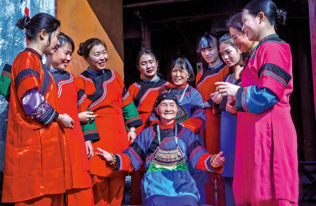 制作客家服飾(曹建平 攝) 讓更多人看到美麗的客家藍(lán) 2018年,長(zhǎng)校客家傳統(tǒng)服飾技藝成為市級(jí)非物質(zhì)文化遺產(chǎn),80余歲的馬玉英和69歲的鄒春仙成了僅存的兩名制衣傳承人。因長(zhǎng)校鎮(zhèn)物產(chǎn)富饒,具有豐富的歷史、紅色文化資源,在近幾年舉辦的一些大型對(duì)外活動(dòng)上,馬玉英和鄒春仙都會(huì)穿上大襟衫,充當(dāng)客家傳統(tǒng)服飾的“活招牌”。有時(shí),馬玉英還會(huì)帶上自己制作的花船、貝殼等,到活動(dòng)現(xiàn)場(chǎng)表演助興,游客對(duì)此表現(xiàn)出極大興趣,紛紛拍照留念,詳詢大襟衫歷史。 為了讓更多人看見大襟衫的美,馬玉英申請(qǐng)了抖音號(hào),時(shí)常發(fā)一些穿著傳統(tǒng)服飾的視頻,粉絲也越來越多。因馬玉英、鄒春仙及一些傳統(tǒng)文化守護(hù)工作者的堅(jiān)持,長(zhǎng)校客家傳統(tǒng)服飾又重新走進(jìn)人們的視野。 來源:三明新周報(bào)(通訊員:吳火招) |