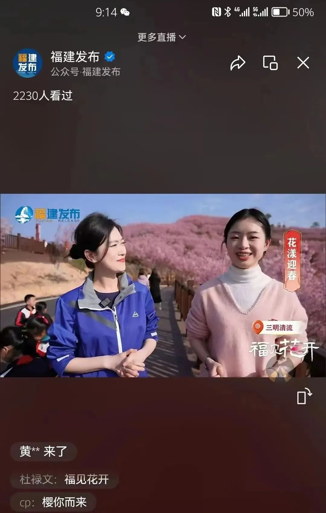 這個(gè)特別節(jié)目由福建發(fā)布、福建新聞?lì)l道、福建鄉(xiāng)村振興頻道同步直播,打通大小屏,聯(lián)動(dòng)新華網(wǎng)、央視頻、華人頭條等全國(guó)、海外媒體,并推送全省市縣級(jí)融媒體中心等共70多個(gè)新媒體平臺(tái)同步播出,全網(wǎng)累計(jì)播放量超千萬(wàn)次,轉(zhuǎn)發(fā)、評(píng)論、點(diǎn)贊、社群互動(dòng)量超26萬(wàn)次。其中,直播在新華網(wǎng)總網(wǎng)首頁(yè)展示,央視頻首頁(yè)、直播頁(yè)雙頁(yè)中心位置推薦,在重要移動(dòng)端平臺(tái)也獲得優(yōu)質(zhì)內(nèi)容流量?jī)A斜,引發(fā)全網(wǎng)觀眾“云賞花”熱潮,怒放的櫻花也已成為清流縣的一張燙金名片,每年到了櫻花盛開(kāi)的時(shí)候,這里便花如海,人如潮。 |