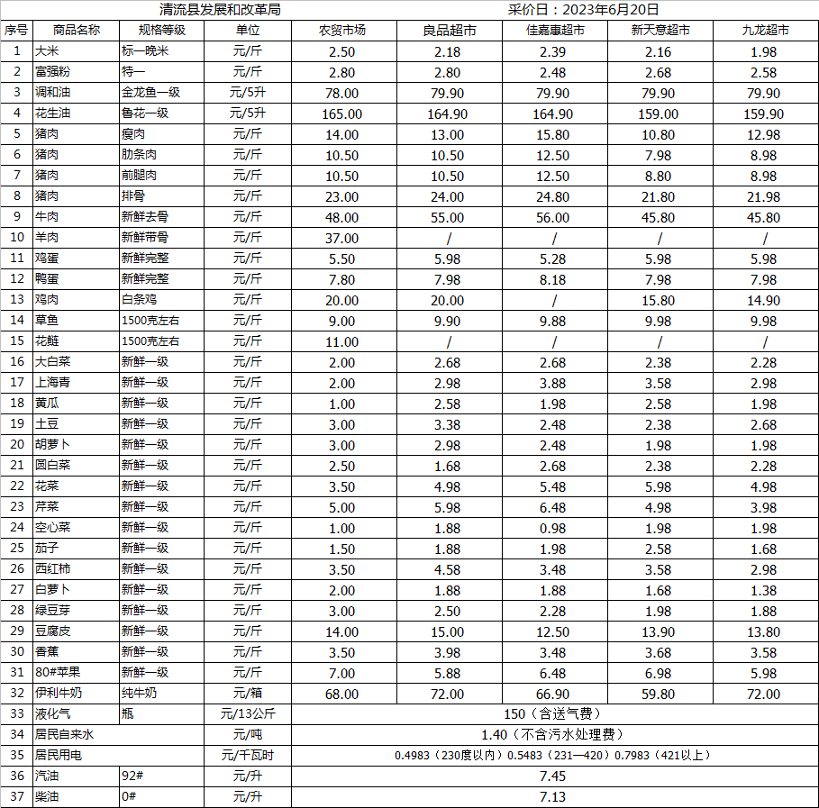 清流縣民生價(jià)格行情(采價(jià)日:2023.06.20)