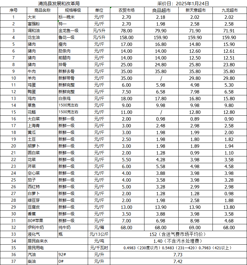 清流縣民生價(jià)格行情(采價(jià)日:2025.01.24)