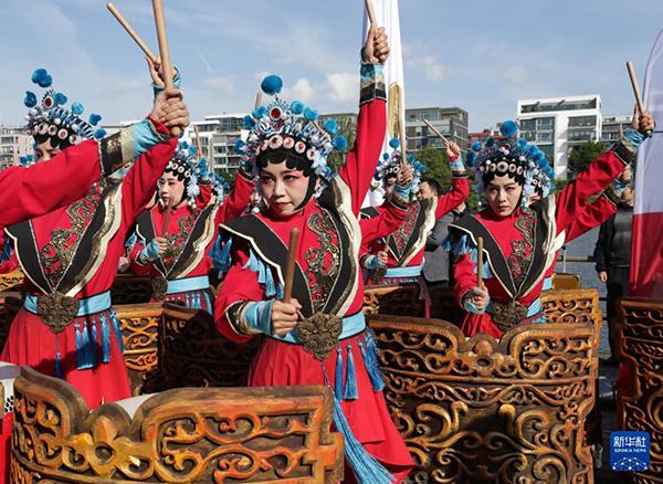 5月24日,中國陜西神木楊家將戰(zhàn)鼓在德國法蘭克福國際龍舟友誼賽期間表演。 為迎接中國傳統(tǒng)節(jié)日端午節(jié),海外多地近日舉行龍舟比賽等活動,讓民眾體驗到多元文化交融的魅力。 新華社記者 張帆 攝