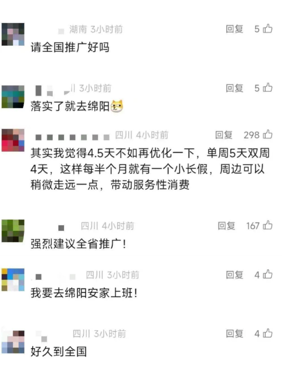 近日 四川綿陽(yáng)宣布 試行4.5天彈性工作制 鼓勵(lì)2.5天休假模式 相關(guān)話題沖上社交平臺(tái)熱搜第一