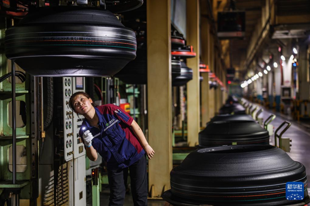 6月16日,工人在山東省榮成市浦林成山(山東)輪胎有限公司的智能化生產(chǎn)車(chē)間內(nèi)作業(yè)。5月份,全國(guó)規(guī)模以上工業(yè)增加值同比增長(zhǎng)5.8%。新華社發(fā)(李信君攝)